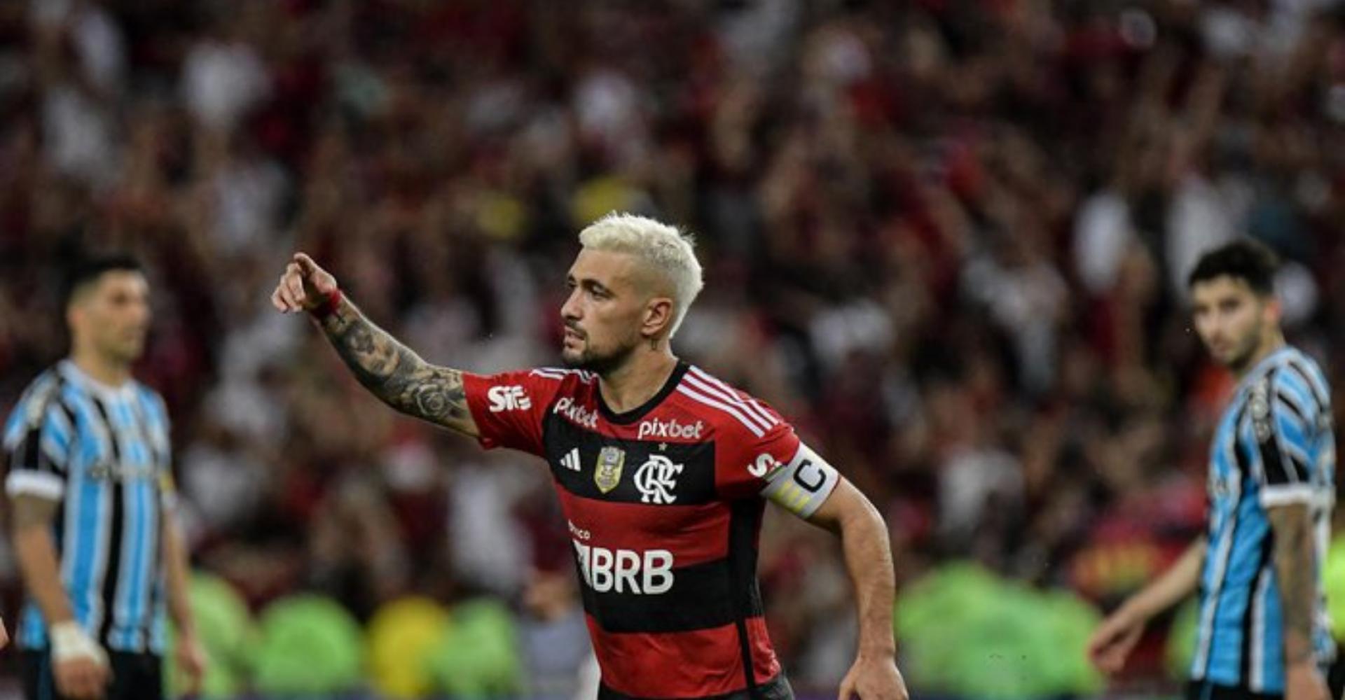 Só que a bola aérea que castigou o Flamengo na Libertadores foi salvação na Copa do Brasil. Léo Pereira cabeceou após cobrança de escanteio. A bola bateu na mão de Rodrigo Ely e o VAR foi acionado para Bráulio da Silva confirmar pênalti a favor do time carioca. Arrascaeta não deu chances a Grando e enterrou de vez as esperanças gremistas em uma virada: 1 a 0.
