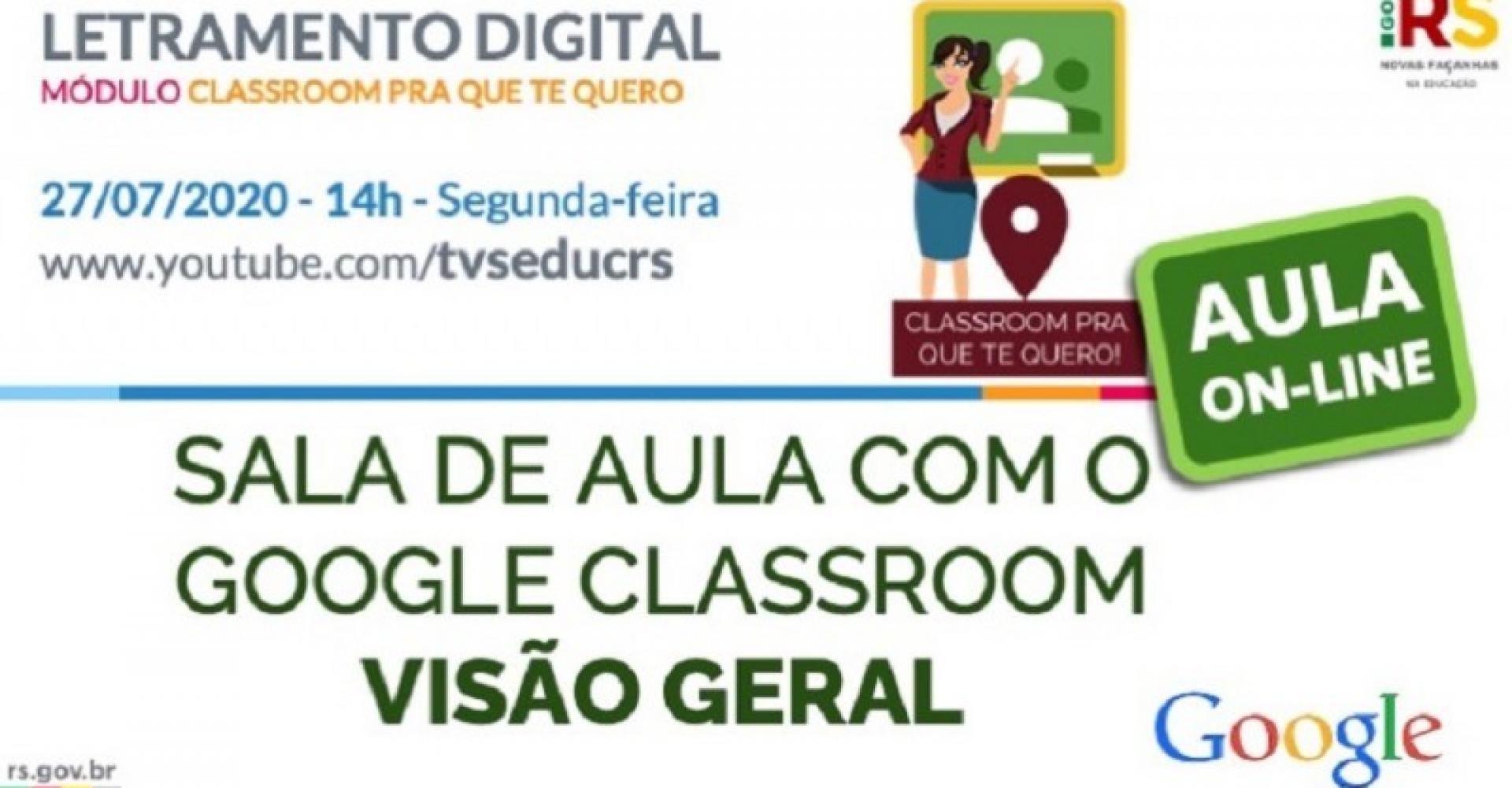 Devido à crise na educação, ocasionada pela pandemia de Covid-19, o Governo do Rio Grande do Sul implantou as Aulas Remotas na Rede Estadual de Ensino do Rio Grande do Sul. A iniciativa tem proporcionado, por meio da plataforma Google Classroom, a conexão entre professores e alunos para a realização de aulas no ambiente virtual.