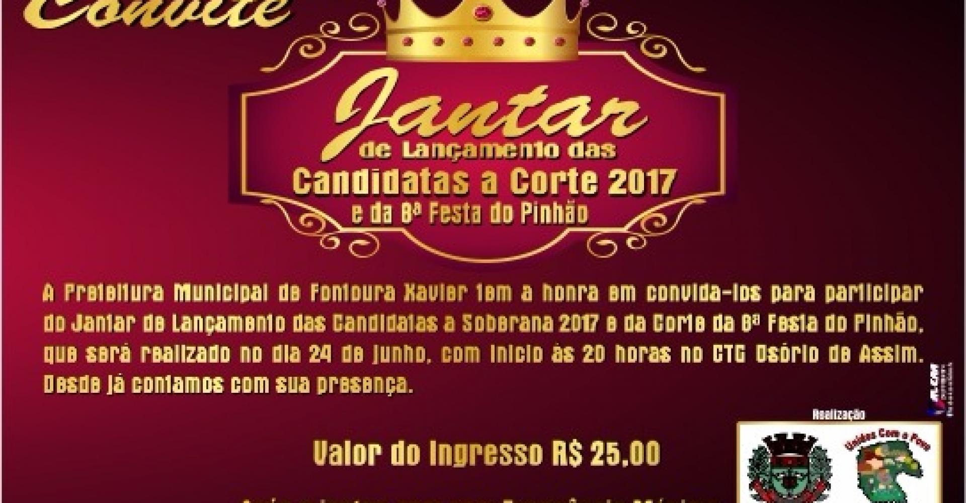 Foram prorrogadas para sexta-feira (16), o prazo final para as inscrições no concurso das soberanas do município e da 8ª Festa do Pinhão de Fontoura Xavier.  A escolha ocorre no Baile do município, no dia 08 de julho. A Corte eleita permanece com o título pelo período de um ano.