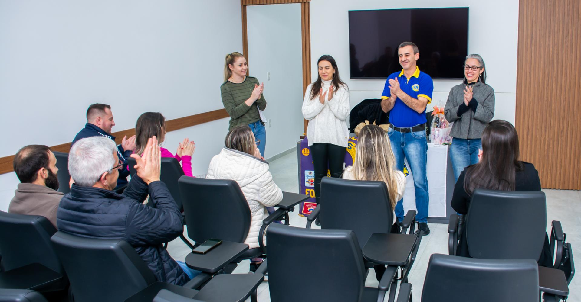 Os novos membros do Lions Clube de Fontoura Xavier são Luana Piovesani e Armando Graff, estes receberam os broches dos seus padrinhos Carla Lima e Gabriela Taffarel Catto.