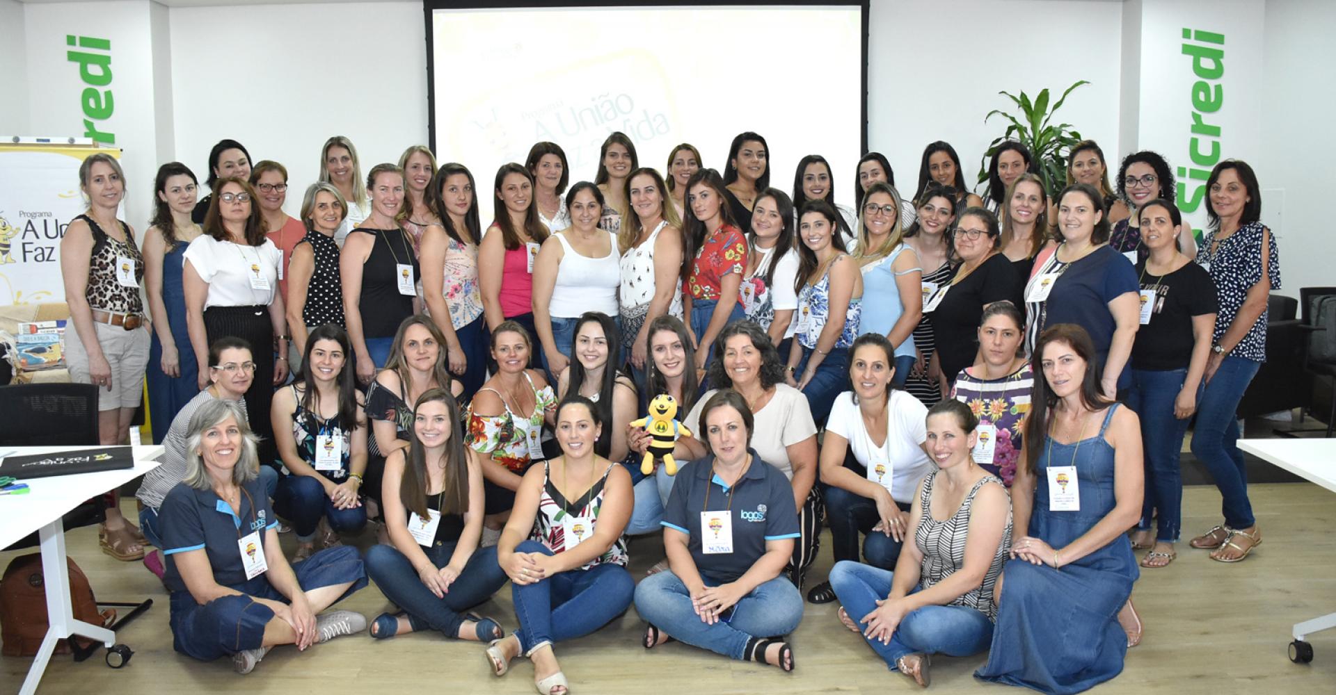 Com encontros já realizados em Fontoura Xavier e Pouso Novo, nos dias 6 e 7, o auditório da Sede Regional recebeu as professoras de Nova Alvorada e São José do Herval, dois municípios iniciantes, para acompanhar a apresentação do funcionamento e proposta do A União Faz a Vida.