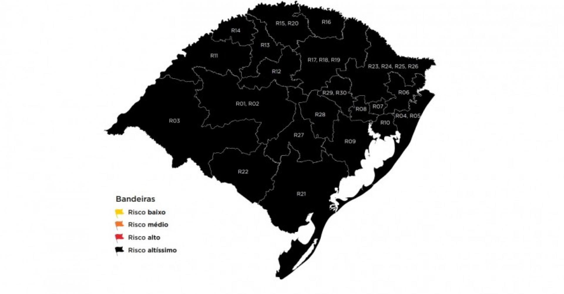As regiões Covid de Capão da Canoa, Taquara, Novo Hamburgo, Canoas, Porto Alegre, Palmeira das Missões, Erechim, Passo Fundo, Caxias do Sul, Santa Cruz do Sul e Lajeado já haviam sido classificadas na bandeira preta na região anterior. A diferença, nesta semana, é que elas não poderão adotar a cogestão, que está suspensa, sendo obrigadas a adotarem os protocolos estaduais de bandeira preta.