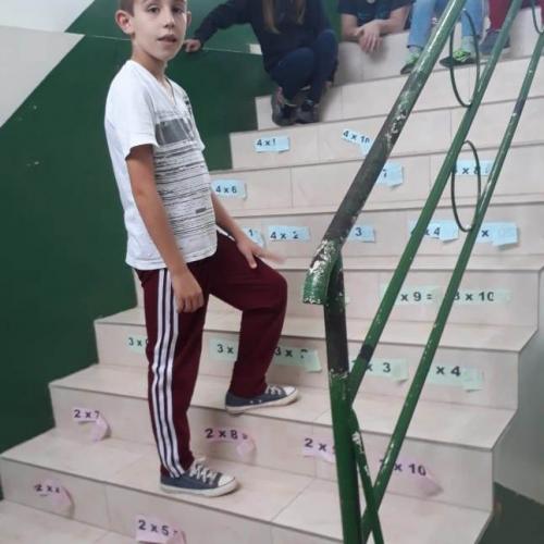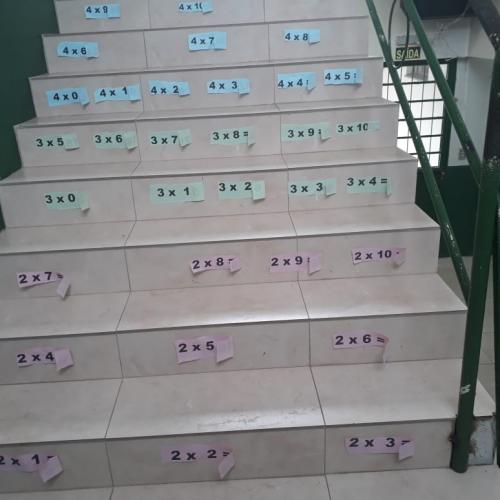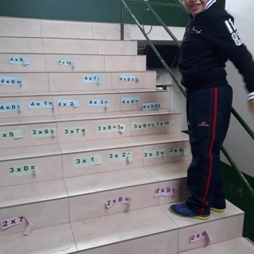 A ideia é despertar nas crianças o entendimento de que a matemática pode ser prazerosa, podendo ser explicitada a partir de diferentes vivencias. Para tanto, atividades atrativas e criativas enfeitam salas de aula e a escada que dá acesso ás salas de aula dos anos iniciais do ensino fundamental, propiciando aos alunos condições de estudar e brincar ao mesmo tempo. A iniciativa, desenvolvida pela professora Bernardete com a turma do 4º ano por meio de estratégias interdisciplinares, permite também que os estudantes construam a compreensão de que o conhecimento é global, resultando de experiências em diferentes áreas da aprendizagem. tabuada doce, tabuada na escada, escalas crescentes e decrescentes, cantinhos do conhecimento, cubos de histórias e outras práticas integram a ideia, criando situações de alegria e aprendizagem concreta. “Aprender é uma atividade natural do ser humano. Cabe à escola incentivar a construção do entendimento de que é possível aprender de forma prazerosa”, destaca a professora Bernardete, orgulhosa dos resultados alcançados pela turminha.