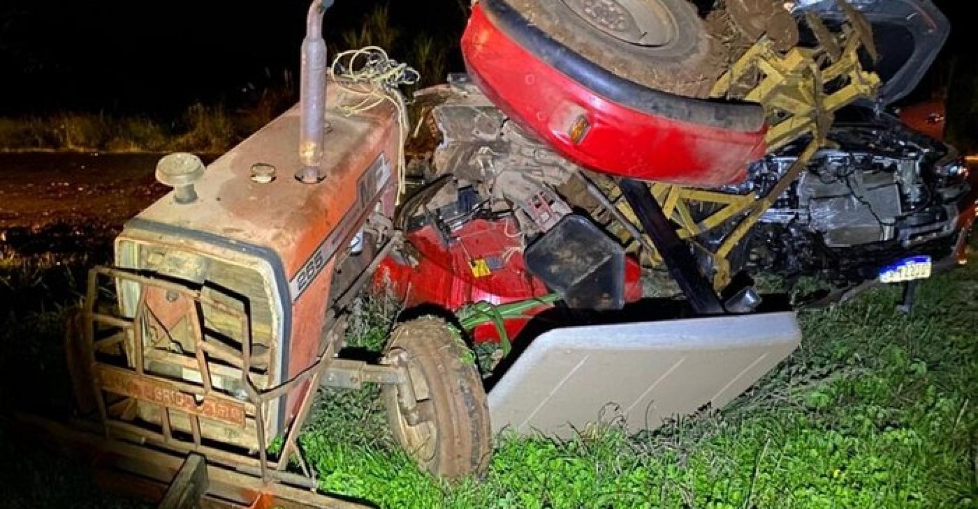 Uma caminhonete Hilux bateu na traseira de um trator na noite de quarta-feira (10), na RS-475, em Estação, no norte do Estado.