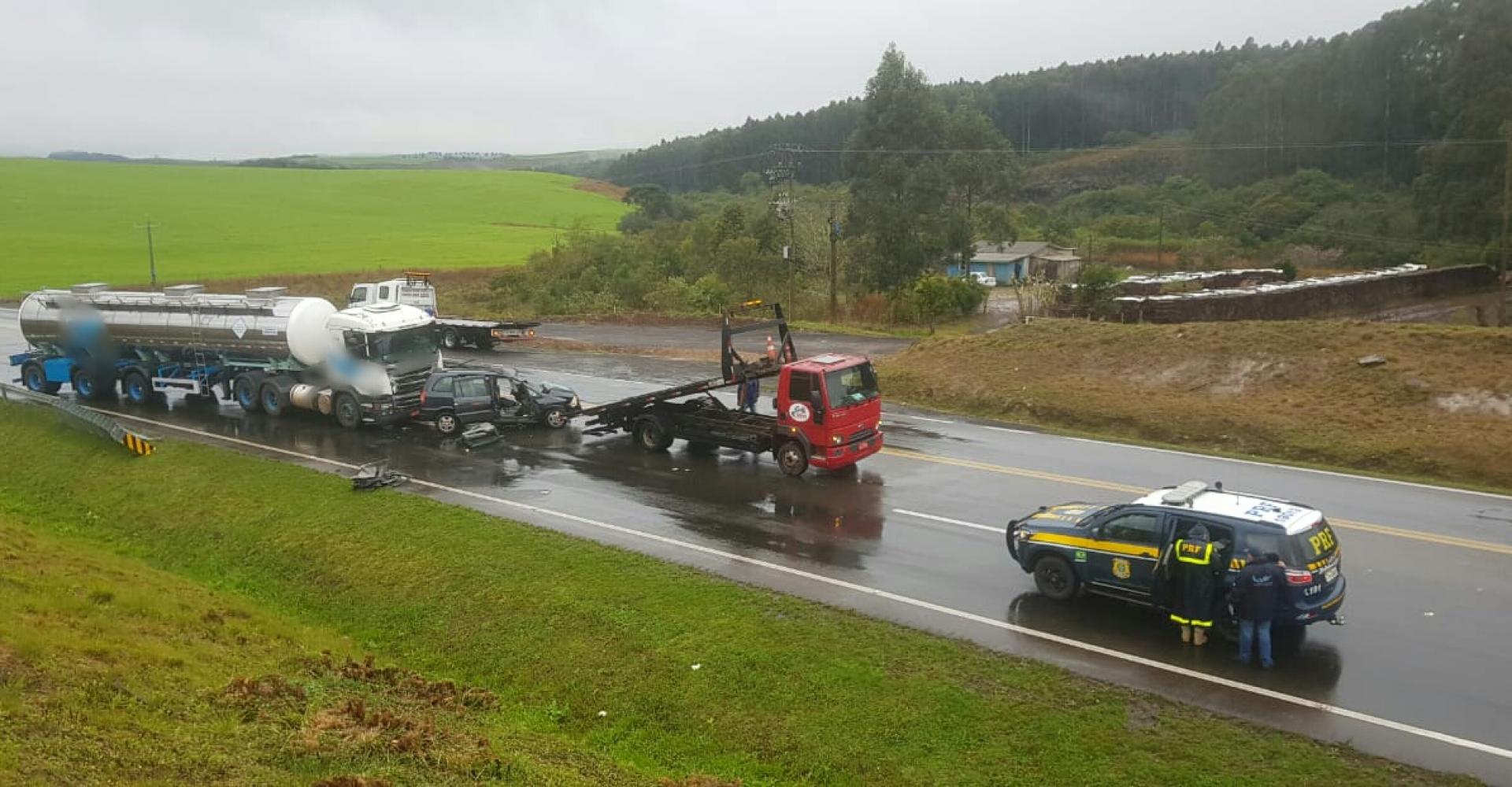 O motorista de um automóvel GM Zafira com placa de Novo Hamburgo transitava no sentido capital x interior, perdeu o controle do veículo, invadiu a faixa contrária, colidiu com a defensa, retornou à faixa de rolamento onde foi atingido por uma carreta Scania com placa de Lajeado, que transitava no sentido interior x capital.