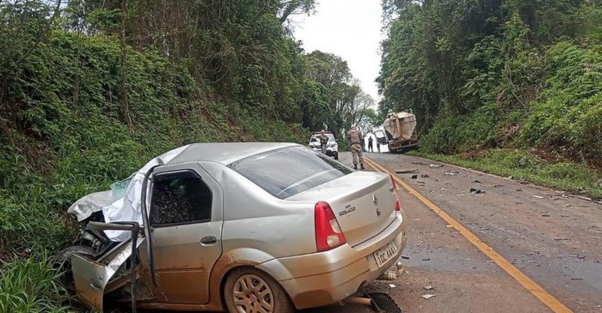 Mulher morre após carro colidir de frente com caminhão em Áurea