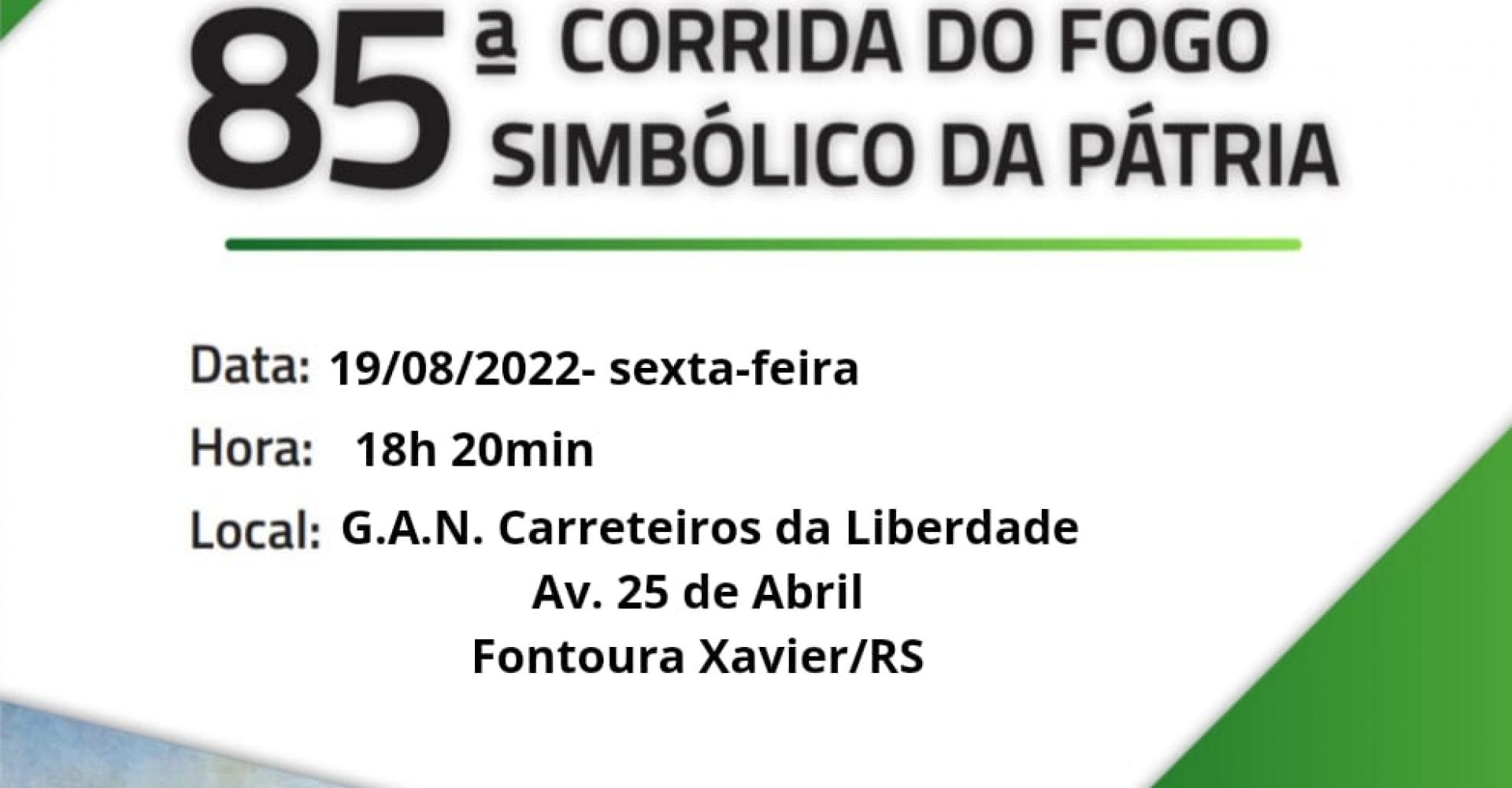 Nesta sexta (19/08) ocorrerá a 85ª Corrida do Fogo Simbólico da Pátria em Fontoura Xavier
