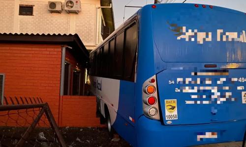 Micro-ônibus invade pátio de estabelecimento após motorista cochilar ao volante no RS...