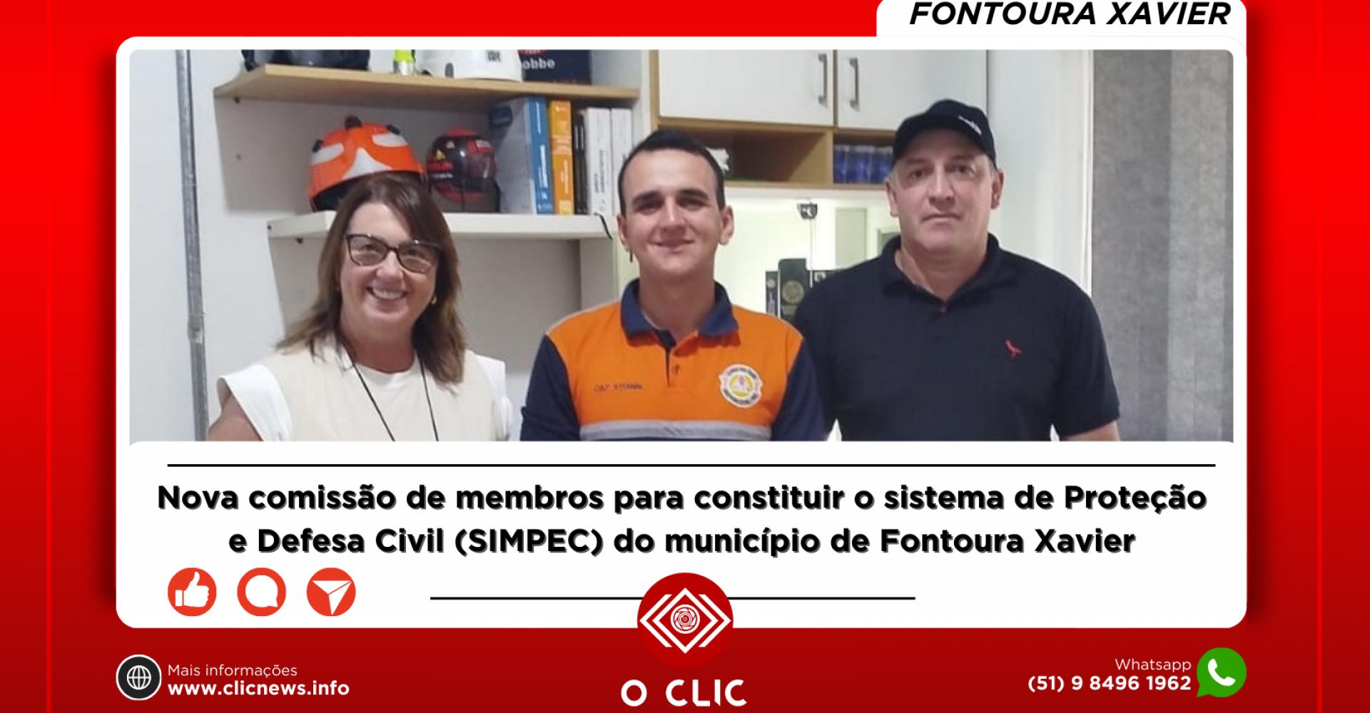 Com o intuito de continuar atendendo a população na sua integra a administração formou uma nova comissão de membros para constituir o sistema de Proteção e Defesa Civil (SIMPEC) do município de Fontoura Xavier, o Srº Josimar Miranda da Silva, Secretario da Assistência Social foi nomeado Coordenador Geral.