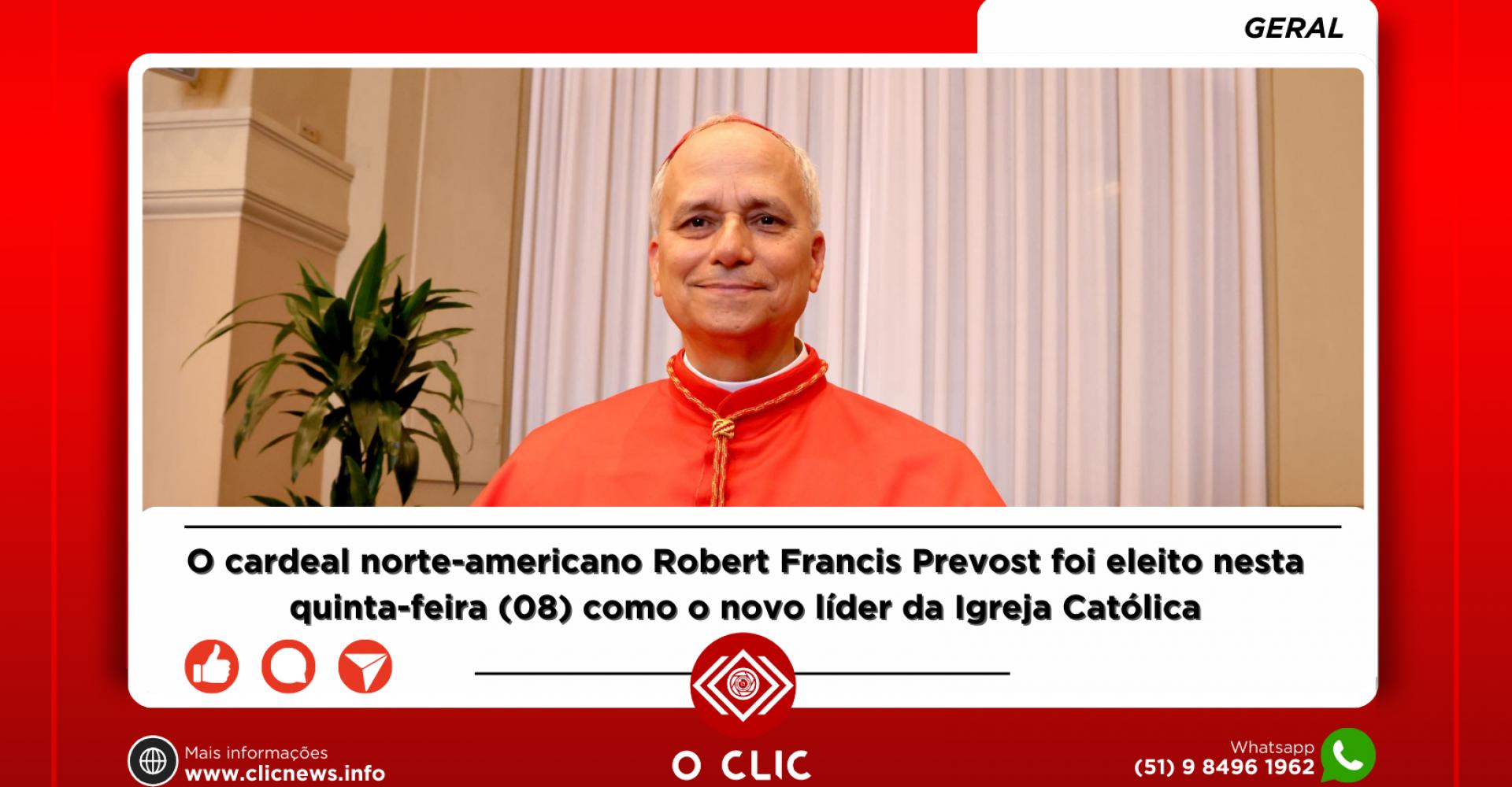 O cardeal norte-americano Robert Francis Prevost foi eleito nesta quinta-feira (08) como o novo líder da Igreja Católica