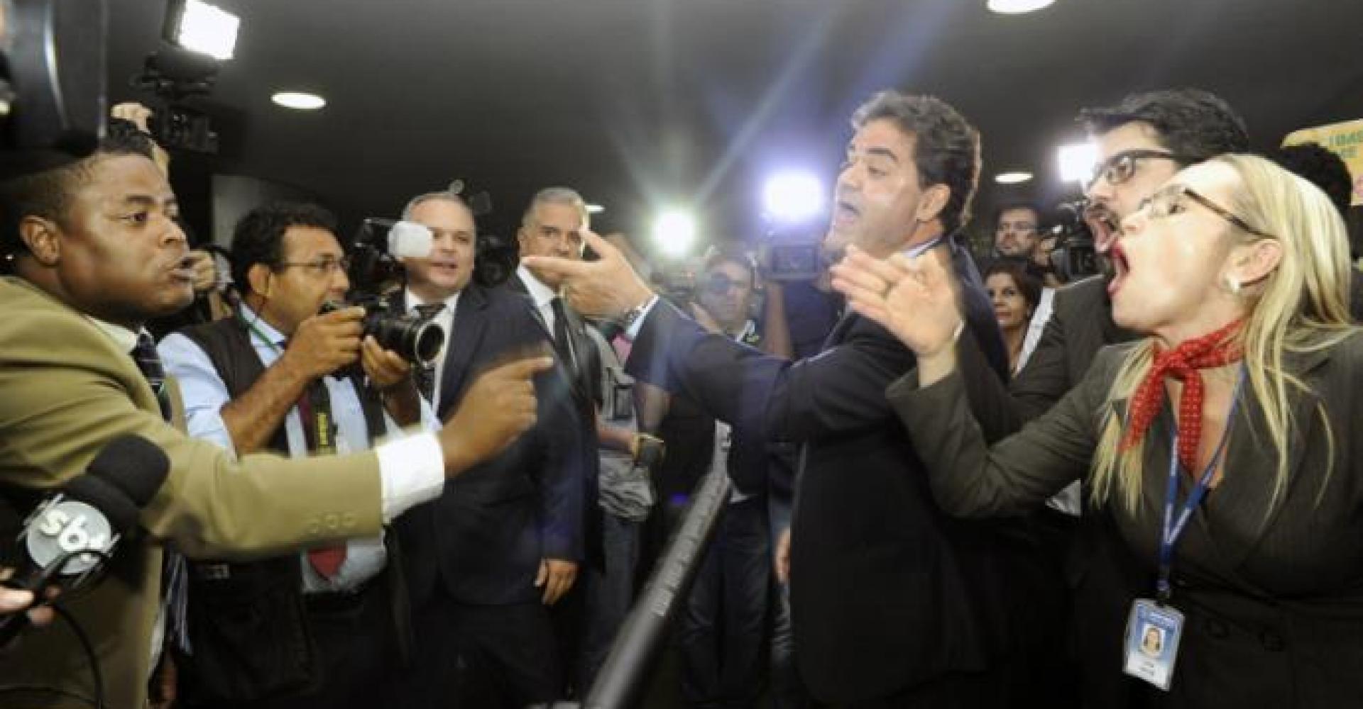 O Salão Verde da Câmara dos Deputados foi palco, na tarde de segunda-feira, de manifestações contrárias e favoráveis ao impeachment da presidente Dilma Rousseff, com troca de palavras de ordem envolvendo as duas partes.