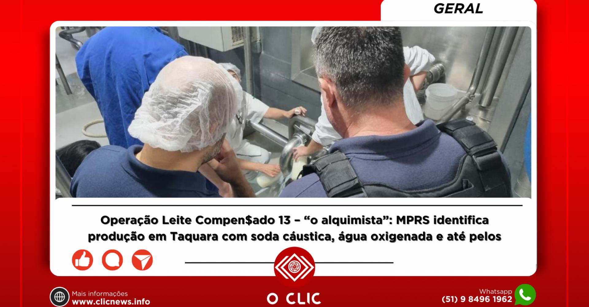 Quase 12 anos depois da primeira fase e pouco mais de sete anos após a 12ª etapa, o Ministério Público do Rio Grande do Sul (MPRS) deflagrou nesta quarta-feira, 11 de dezembro, a Operação Leite Compen$ado 13 e, desta vez, prendendo novamente o químico industrial conhecido entre os fraudadores como o “alquimista” ou o “mago do leite”. Por meio das Promotorias de Justiça Especializada Criminal de Porto Alegre e de Defesa do Consumidor, foi identificada a produção de derivados lácteos – leite UHT, composto, leite em pó, soro, entre outros –, em uma indústria no município de Taquara, no Vale do Paranhana, com adição soda cáustica e outros produtos nocivos à saúde, como água oxigenada. Além disso, foram detectados “pelos indefinidos” e pontos de sujeira dentro de embalagens. A Justiça ainda não autorizou a divulgação das marcas.