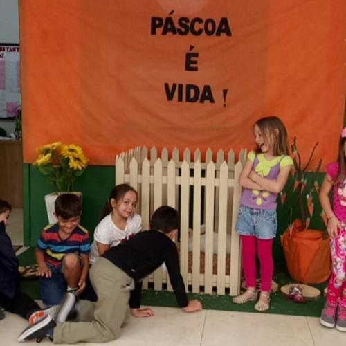 Os alunos dos anos iniciais também realizaram atividades de pinturas com tintas a fim de desenvolver as percepções visuais e táteis estimulando as crianças através de habilidades motoras, cognitivas e psicomotoras através de pintura com as mãos, além de receberem a visita do maior símbolo da Páscoa, o Coelho, que foi tema para atividades em diferentes áreas do conhecimento. Na última quarta-feira, realizou-se a culminância das atividades, com distribuição de lembrancinhas aos professores e entrega das cestinhas aos pequenos. “Buscamos mostrar aos nossos alunos as diferentes faces da Páscoa, que é uma festa religiosa, mas também explorada no universo comercial, podendo oportunizar amplas possibilidades de aprendizagem”, destacou a Diretora Celi Chiesa, oportunidade na qual agradeceu o empenho dos profissionais envolvidos, desejando a todos “Feliz Páscoa”.
