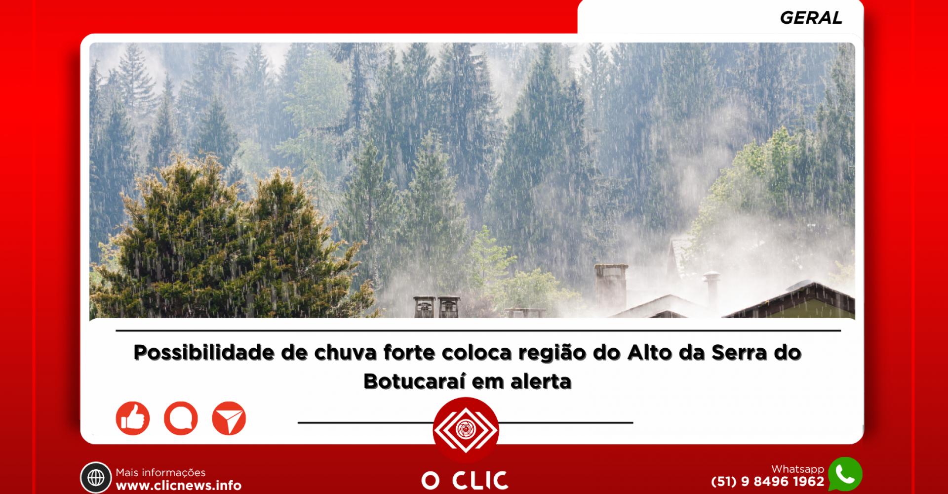 Possibilidade de chuva forte coloca região do Alto da Serra do Botucaraí em alerta