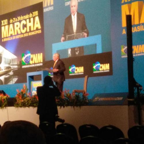 Laurinho está acompanhado do Secretário da fazenda, Rodrigo Fiorentin. O gestor participou da abertura oficial da Marcha, realizada nessa terça-feira (22/05), no Centro Internacional de Convenções do Brasil, a qual contou com a presença do Presidente da Republica, Michel Temer.
