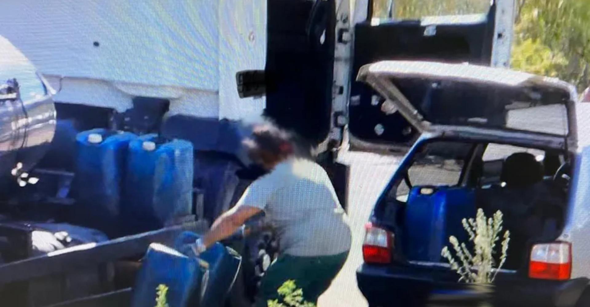 Os dois funcionários aparecem em um vídeo levando um caminhão de combustível da empresa até um veículo em um bairro do município (veja no começo da reportagem). No local, galões aparentemente vazios que estavam no porta-malas do automóvel foram substituídos por outros, mais pesados, que estavam no caminhão. Em seguida, o automóvel deixa o local.