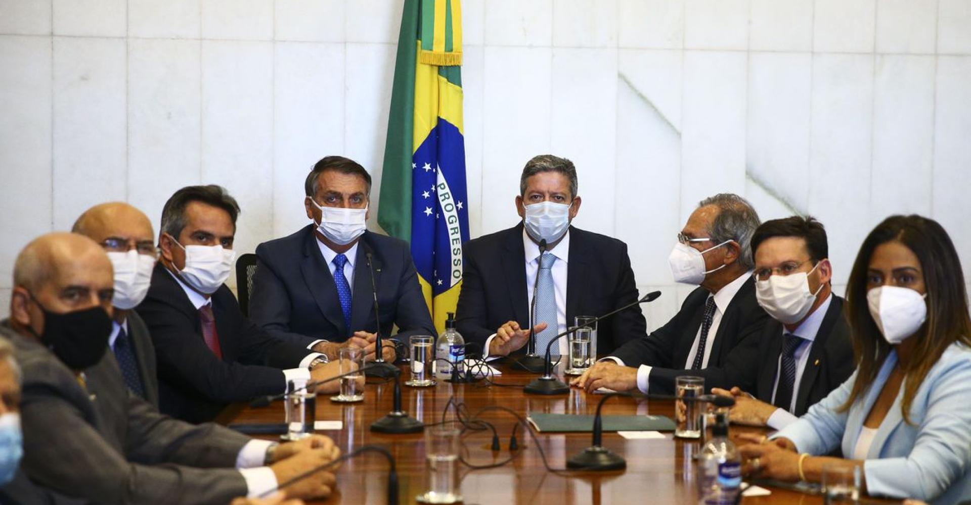 O presidente Jair Bolsonaro durante reunião para entrega da medida provisória do novo Bolsa Família ao presidente da Câmara, Arthur Lira. O programa se chamará Auxílio Brasil.