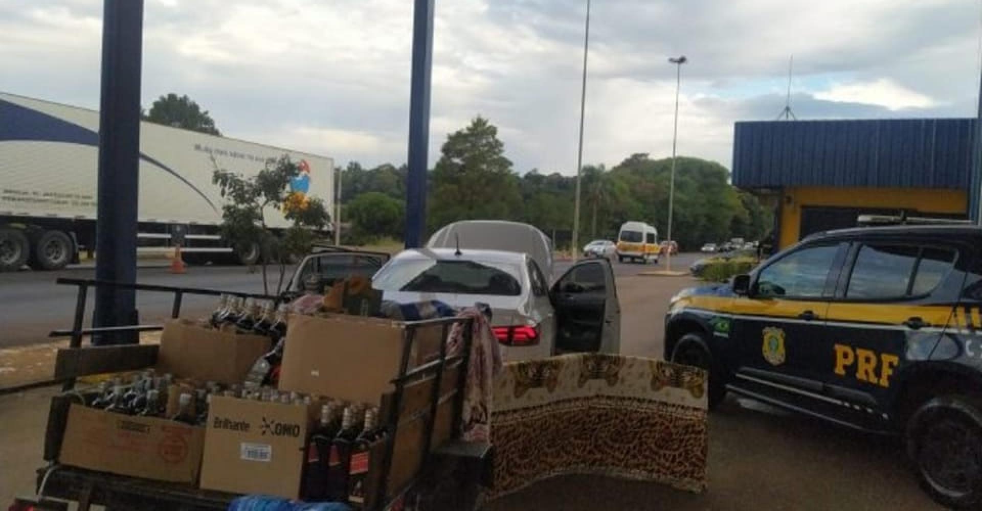 Policiais Rodoviários Federais realizavam operação de combate ao crime na rodovia quando abordaram um Virtus com um reboque, com placas de Caxias do Sul. Ao se aproximarem do veículo, os PRFs notaram diversas caixas cobertas com lençóis, instante em que verificaram o reboque e encontraram várias garrafas de bebidas alcoólicas de marcas diversas, entre vodka e whisky.
