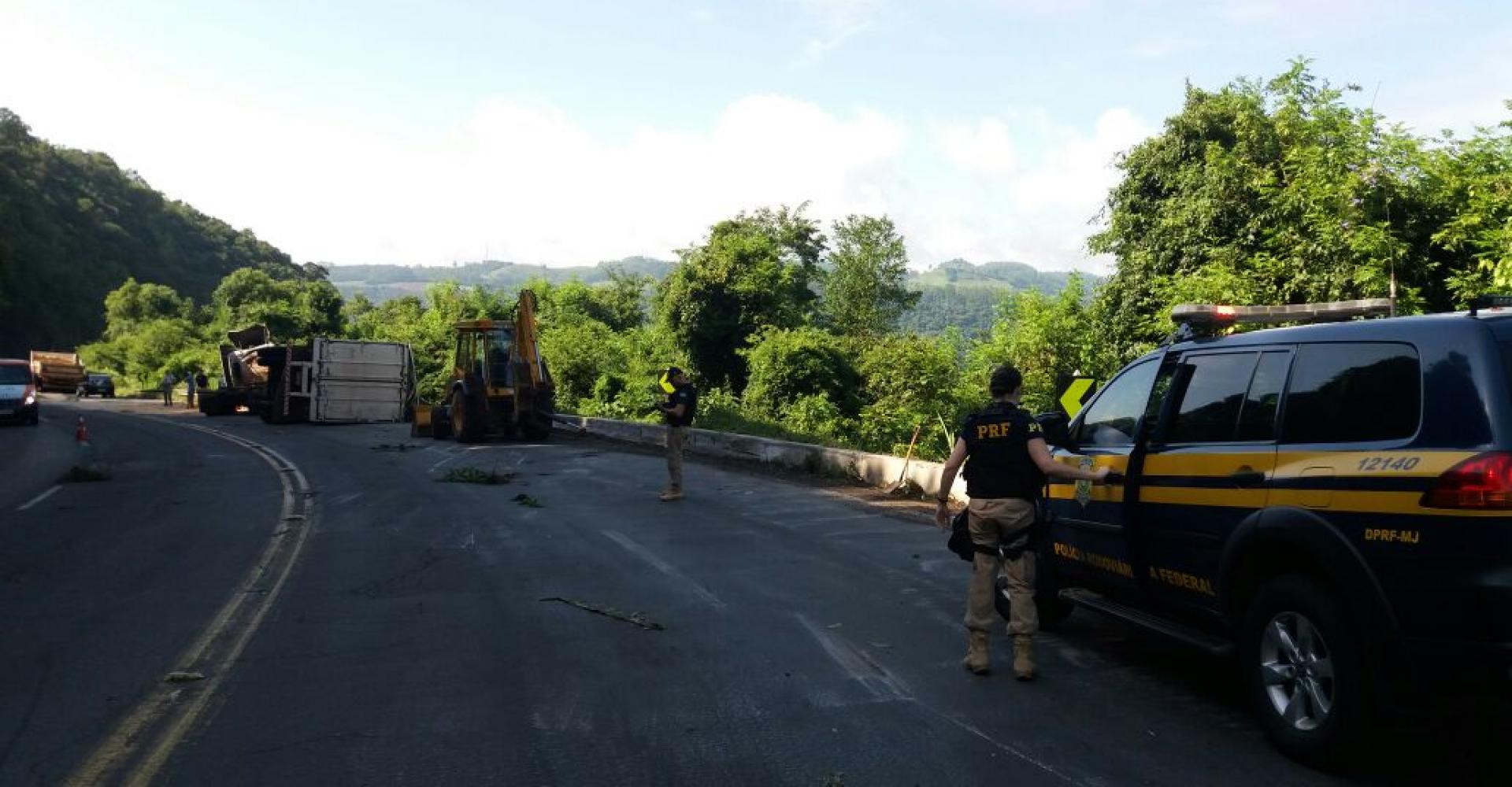 A equipe da PRF está no local e a pista está parcialmente interditada.