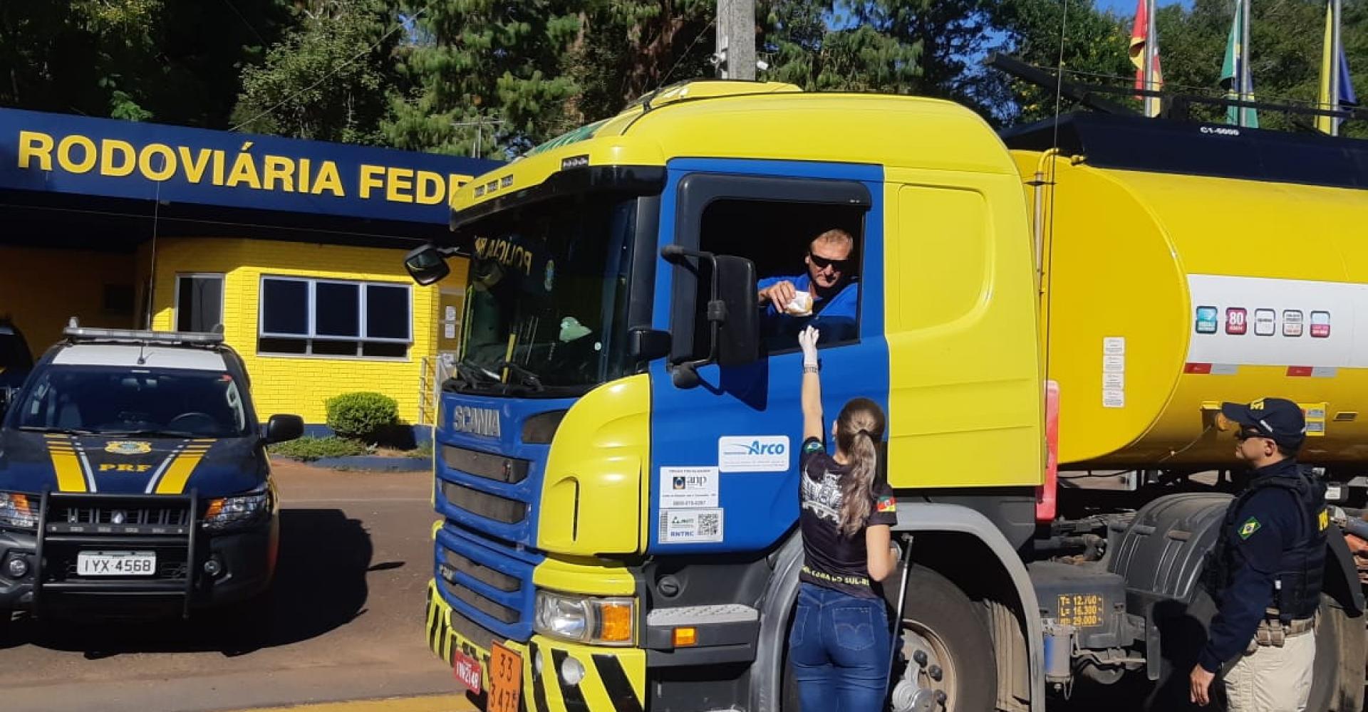 Na manhã desta sexta-feira (27), a Polícia Rodoviária Federal participou da entrega de café da manhã para motoristas de caminhões que passavam pela Unidade Operacional de Lajeado.
