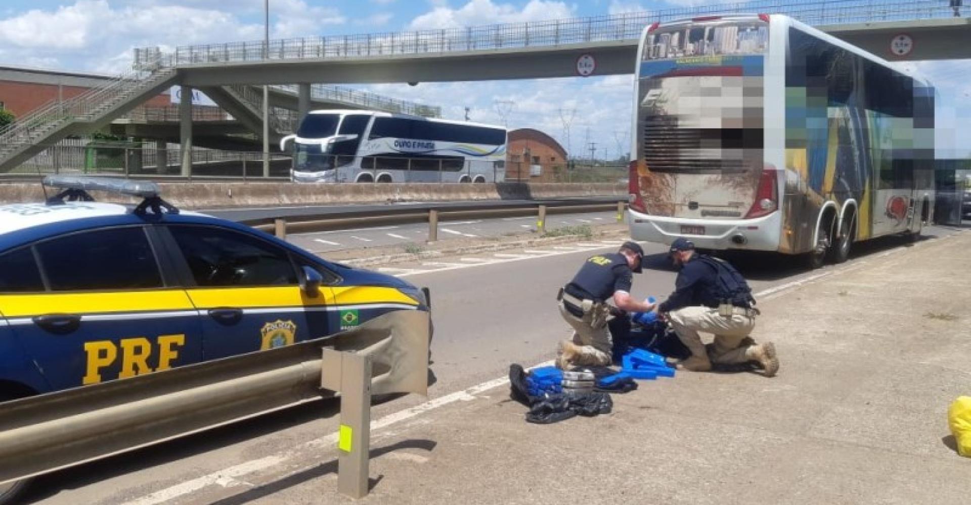 PRF prende duas mulheres com 30 kg de maconha em um ônibus