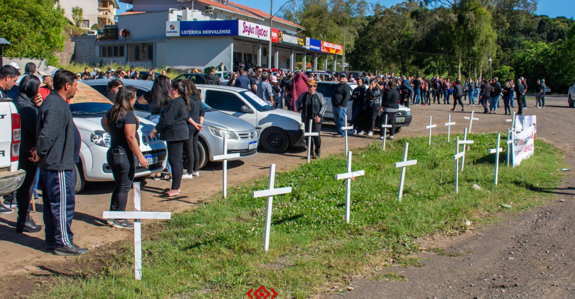 A população se demonstrou insatisfeita e preocupada com as soluções apresentadas pela CCR, pois o comércio local perderia seu acesso principal e a comunidade teria maior dificuldade em acessar a BR 386. A manifestação ocorreu de forma pacífica, sendo fixadas à beira da faixa, diversas cruzes em homenagem às vidas perdidas naquele local e contando com a presença de diversos familiares das vítimas, que levavam consigo, cartazes com mensagens de indignação e saudades.