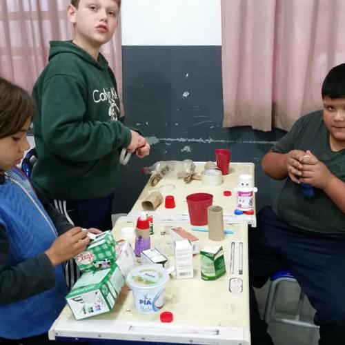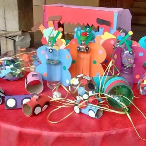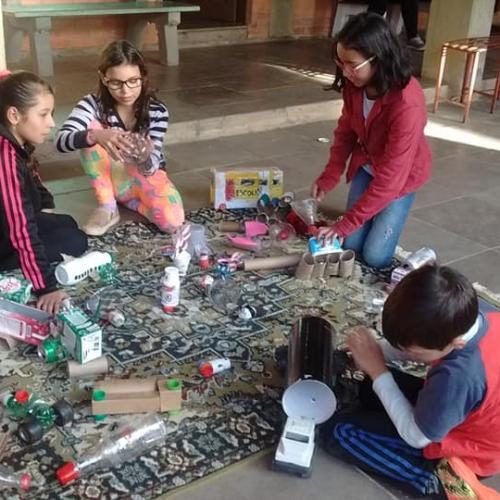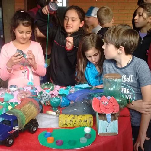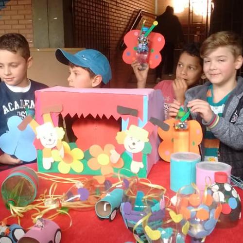 Explorando embalagens e materiais descartáveis, as crianças, com o apoio das professoras, criaram inúmeros brinquedos, que foram tema de mostra temática no dia 05 de Juno, “Dia do Meio Ambiente”. Na oportunidade, as crianças mostraram os brinquedos aos demais estudantes, explicando o processo de desenvolvimento e, também, o período necessário á decomposição do mesmo na natureza.