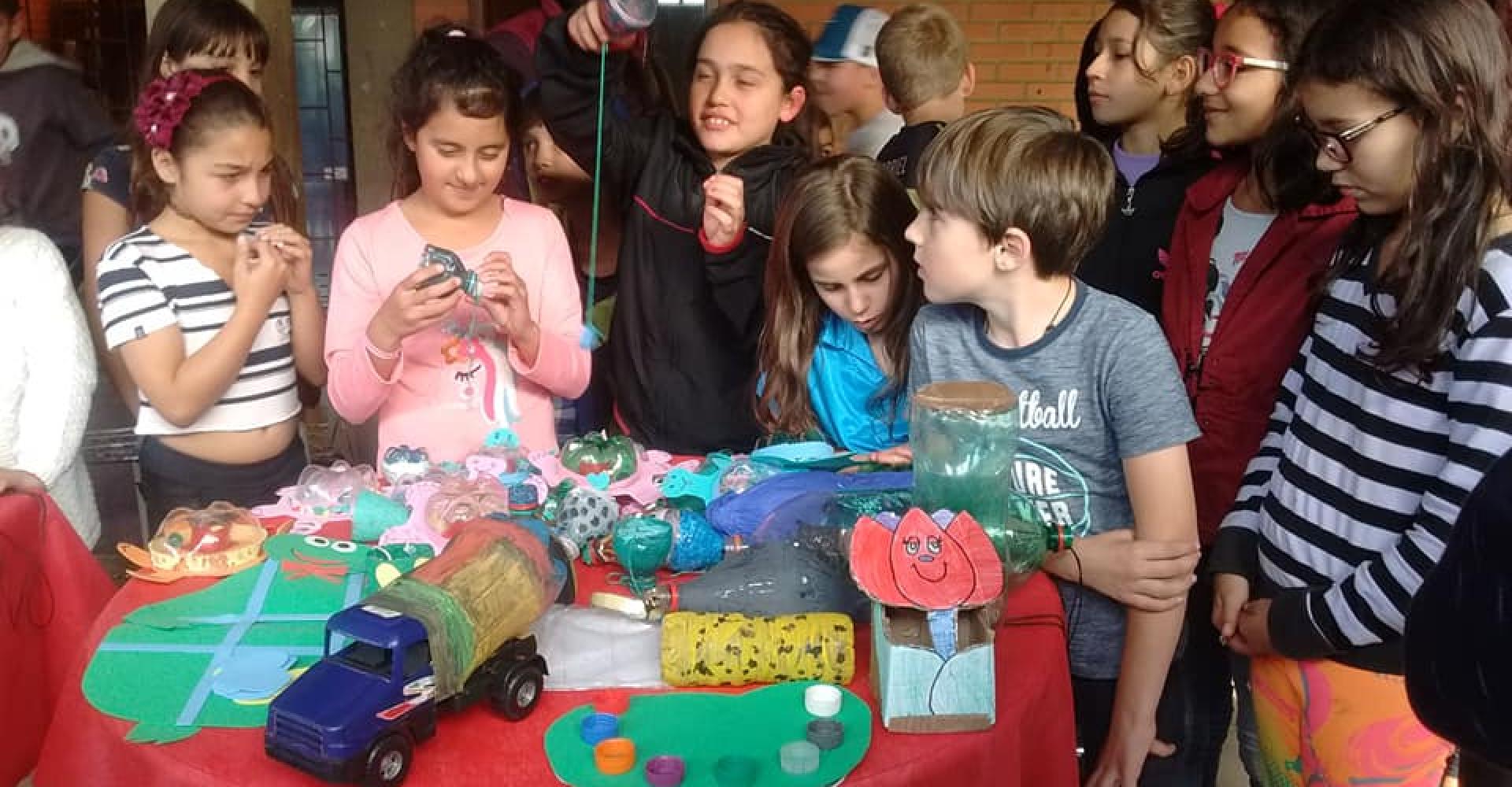 Na última quinzena, os educandos dos anos iniciais de ensino da EEEM Érico Veríssimo, de São José do Herval, participaram de uma proposta coletiva objetivando estimular a criatividade a partir do reaproveitamento de resíduos para confecção de brinquedos.