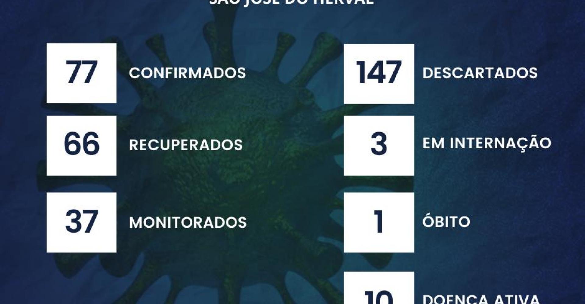 Atualmente São José conta com 37 pessoas sendo monitoradas, três internados, 10 com doença ativa e já chegou a 77 confirmados.