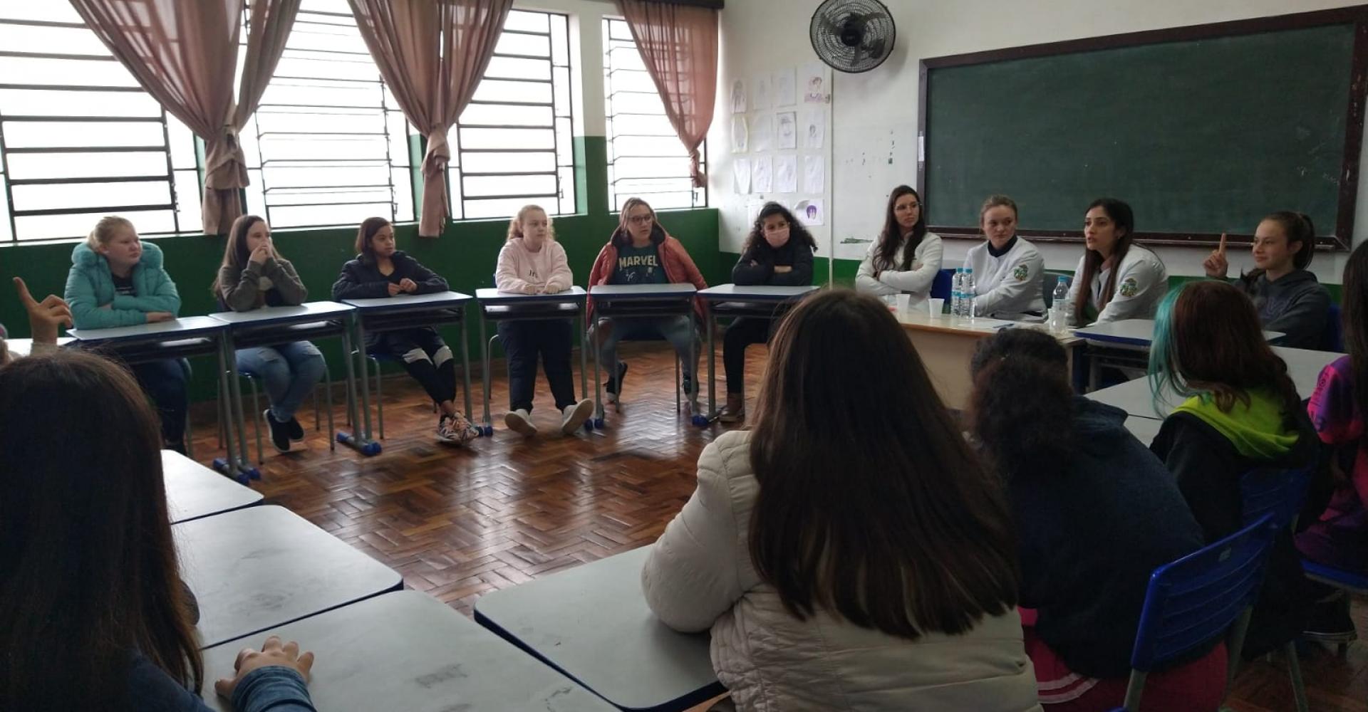 Na visita, foram realizadas rodas de conversa com os alunos das Séries do 5º ao 9º ano pela manhã, e na parte da tarde com os alunos do Ensino Médio.