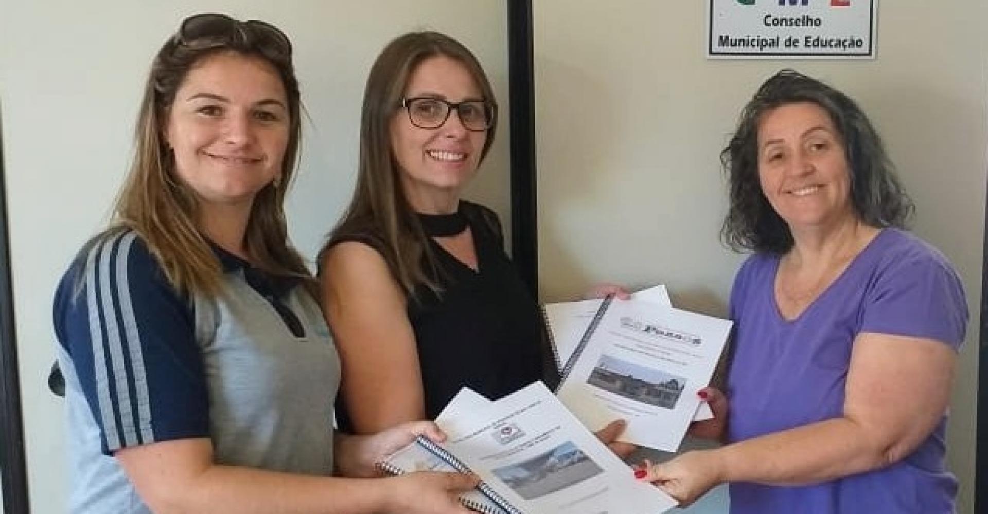 Na manhã da quarta-feira, dia 18 de dezembro, a Secretaria da Educação, sob responsabilidade da Secretária da Educação Micheli Formentão, realizou, em cumprimento à resolução CME 01/2019, que institui prazo para a mantenedora realizar a entrega dos documentos pertinentes às escolas da Rede Municipal (Art. 19), a entrega dos Planos de Estudos, Projetos Políticos Pedagógicos e Regimentos escolares ao Conselho Municipal da Educação, sob presidência da Pedagoga Mara Lucia R. Chiesa.