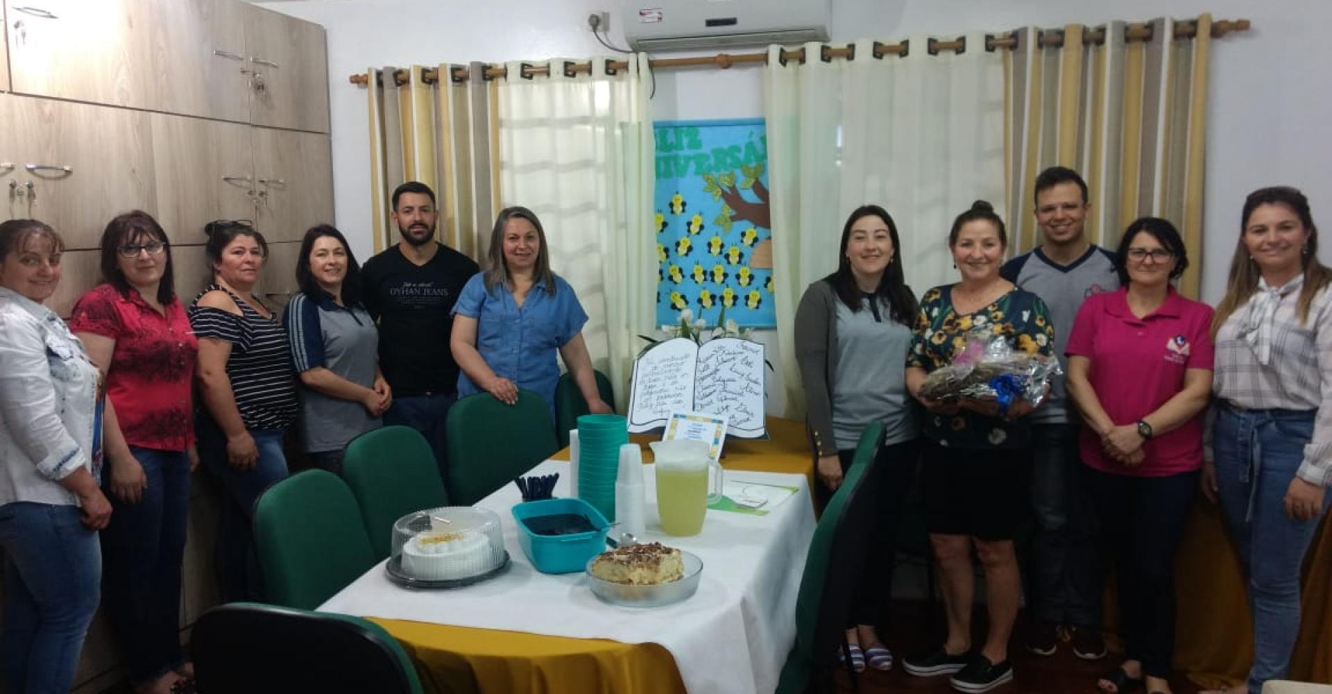 A equipe da Secretaria de Educação e da Escola Municipal Tomé de Souza realizaram no dia 10 de outubro uma homenagem a professora Maria Inês Zanotelli que se aposentou na Escola Tomé de Souza, na área da geografia e história de 6º a 9º ano.