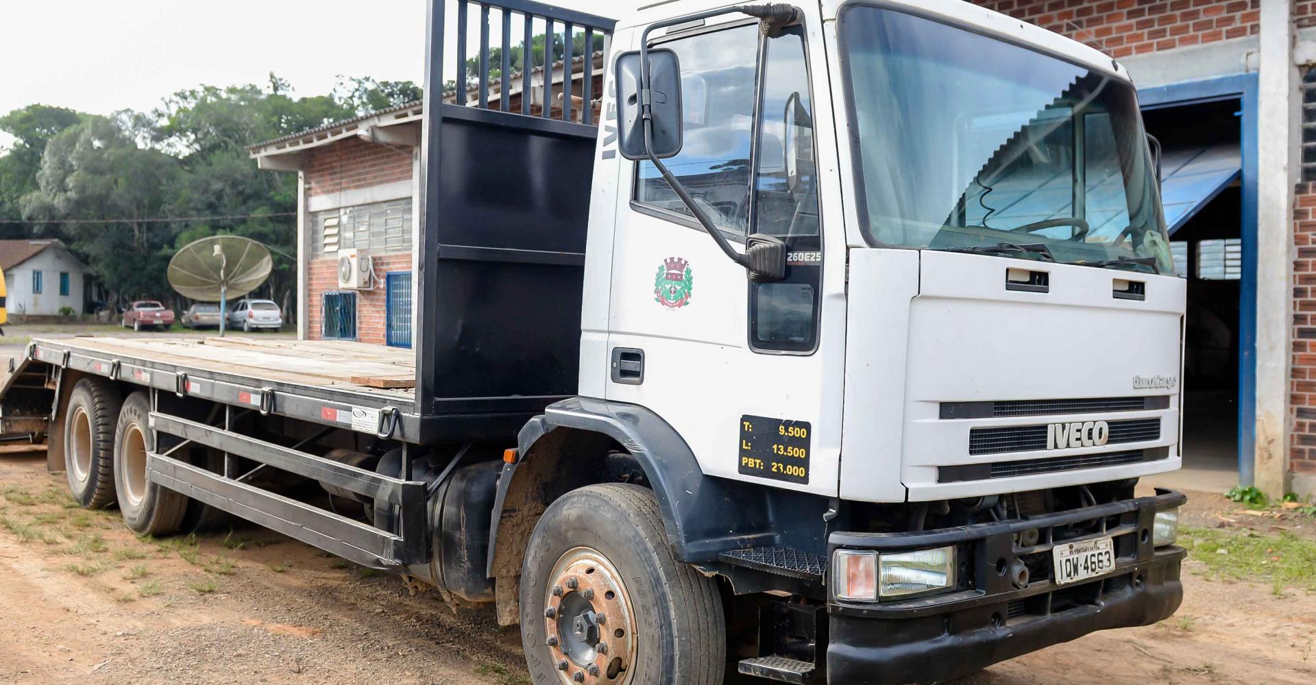 O caminhão Iveco, de placa IQW-4663, foi quem recebeu a prancha. O veículo era um caminhão caçamba, a qual foi retirada para a colocação da prancha. “A mais de oito anos a Administração Municipal vem pagando transporte terceirizado para a locomoção do maquinário pesado, ou seja, escavadeiras, retroescavadeira, rolo”, frisa Nelin.