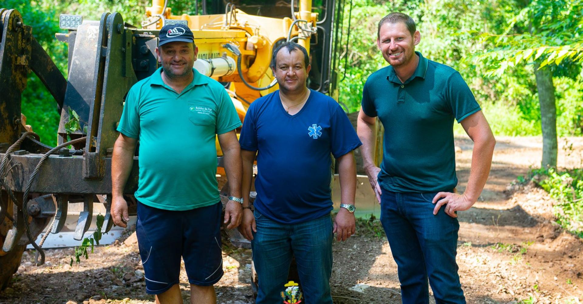 O Secretário Leandro ressalta que a pasta também está acompanhando as obras de terraplanagem que estão sendo executadas no município, na propriedade de Hélio Fachi e também na propriedade de Hélio Meneghetti.