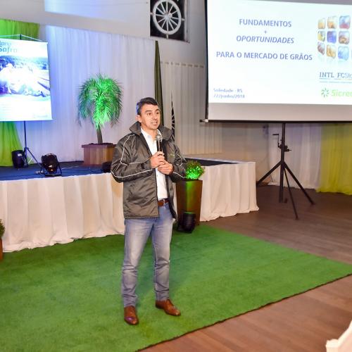 Apoiando na importância do evento esteve presente o gerente regional da INTL FCStone, Eduardo Sanchez, que falou sobre temas gerais do Agronegócio, como cenário e setores econômico do agronegócio, influência do clima. “Nós estamos passando por um momento delicado em termos de macroeconomia. O mercado está cada vez mais olhando para os Estados Unidos, trazendo uma volatilidade do preço da soja, por exemplo, que resulta num preço atual que muitas vezes não tem liquidez, não tem comprador”, afirmou.
