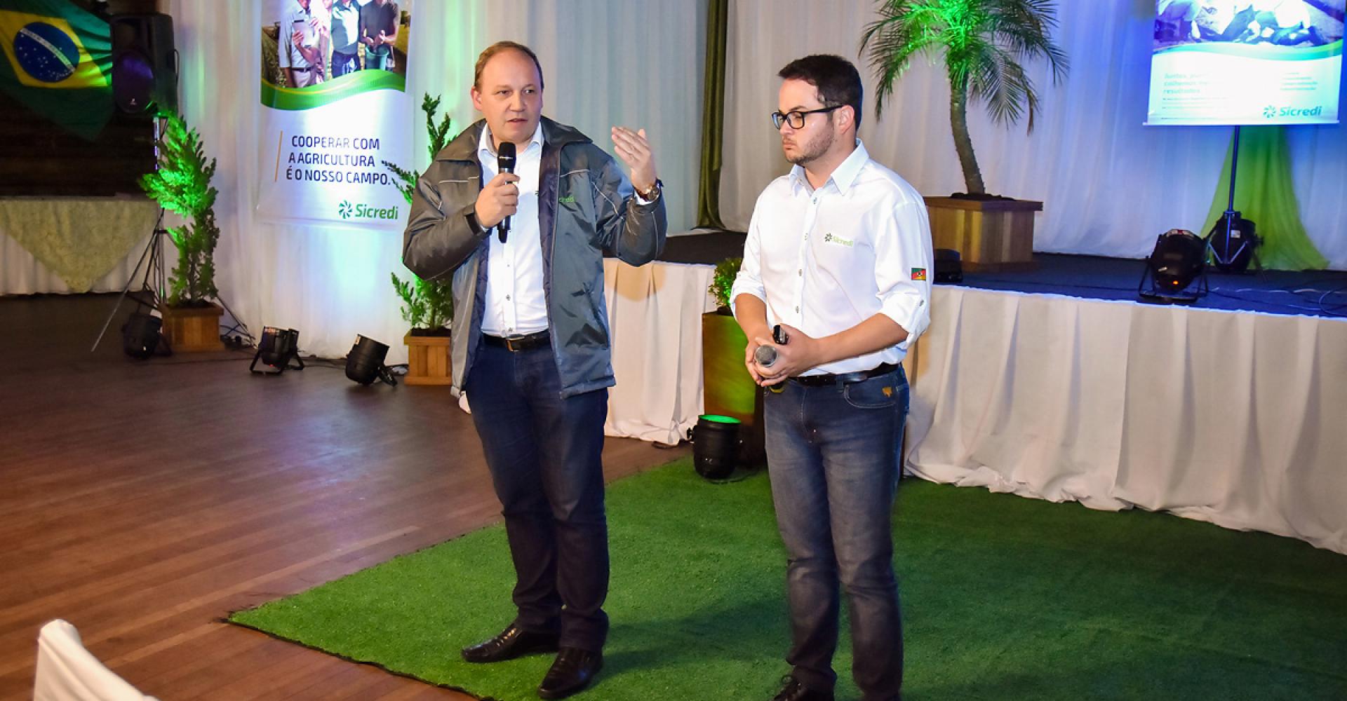 Informando que aproximadamente 200 milhões de reais em recursos do Plano Safra já estão disponíveis nas agências do Sicredi, o Diretor de Negócios, Eudes Mesacasa, juntamente com o Assessor de Negócios, Charles da Silveira, apresentaram o novo regramento para as linhas de crédito de Pronaf, Pronamp e demais produtos para custeio e investimentos com recursos do BNDES e suas documentações, prorrogações, adequações nas operações, entre outros. “Mais importante do que os R$ 530 milhões que temos de Carteira de Crédito, é dizer que 60% é agro; ou seja, R$ 320 milhões de custeio e investimento. O setor é bem representativo para a região e para o Sicredi e isto faz ser ainda mais importante nos tornarmos autossuficiente no crédito rural”, comentou Mesacasa.