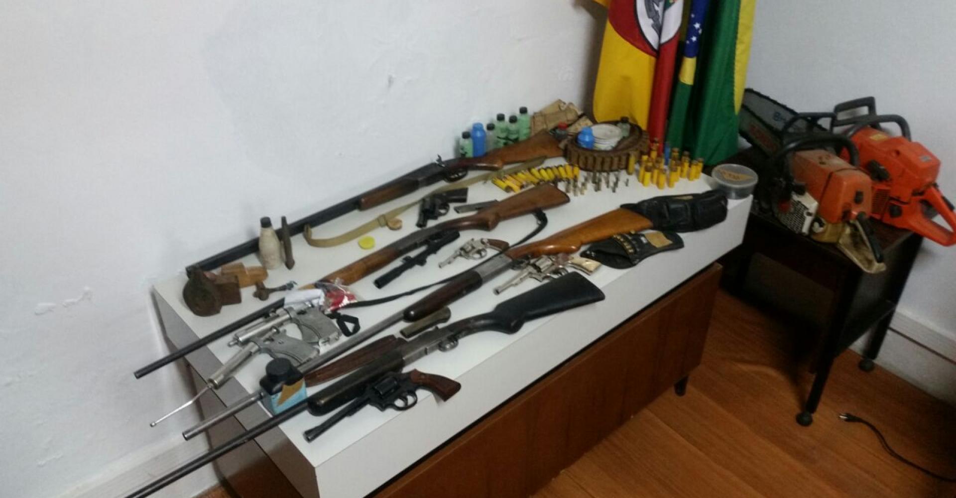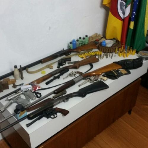 Foram apreendidos 03 revólveres e 03 espingardas, munições diversas, motosserras e outros objetos relacionados aos crimes de furto/roubo no interior de Fontoura Xavier. Foram presos V. S., A.G.O. e N.A.