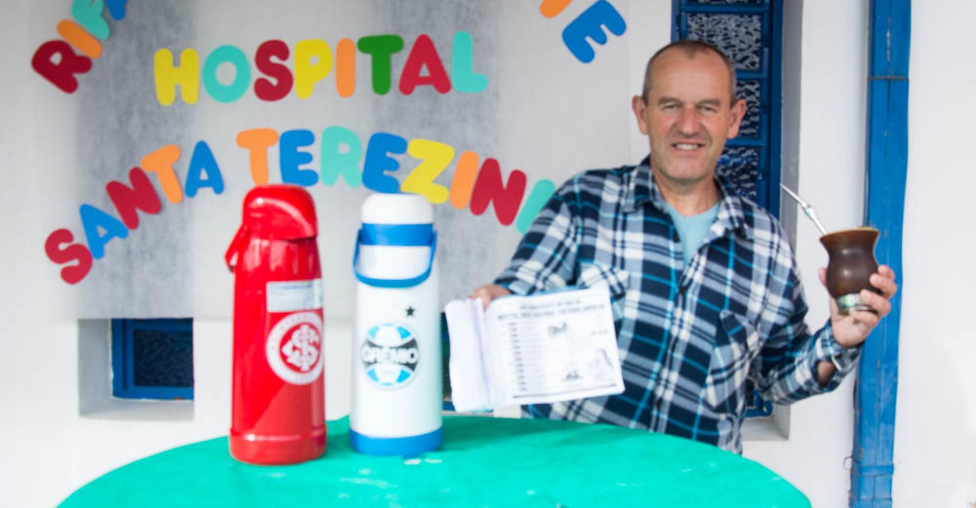 O voluntário e aposentado da Brigada Militar, Mário Orlando Moraes durante todos os dias da semana, nos horários de pico, anda pela cidade oferecendo a rifa e depois do fechamento dos bancos leva água quente e seu chimarrão em frente a Livraria e Loja Tota, onde montou sua banca para a venda. O espaço foi sugerido e cedido pelos proprietários da Loja Tota. “Faço isso com muito prazer, pois estou pensando no bem comum. Sou aposentado e posso fazer este trabalho. Se cada um unir as forças de qualquer forma para ajudar, vamos longe. Nosso hospital passa por dificuldades sérias. R$10,00 é um valor pequeno, podemos todo o mês comprarmos um número até o final do ano. Isso significará muito para o Hospital. Ajude, colabore com nosso Hospital. Venha tomar um mate comigo e traga sua colaboração”, comentou.