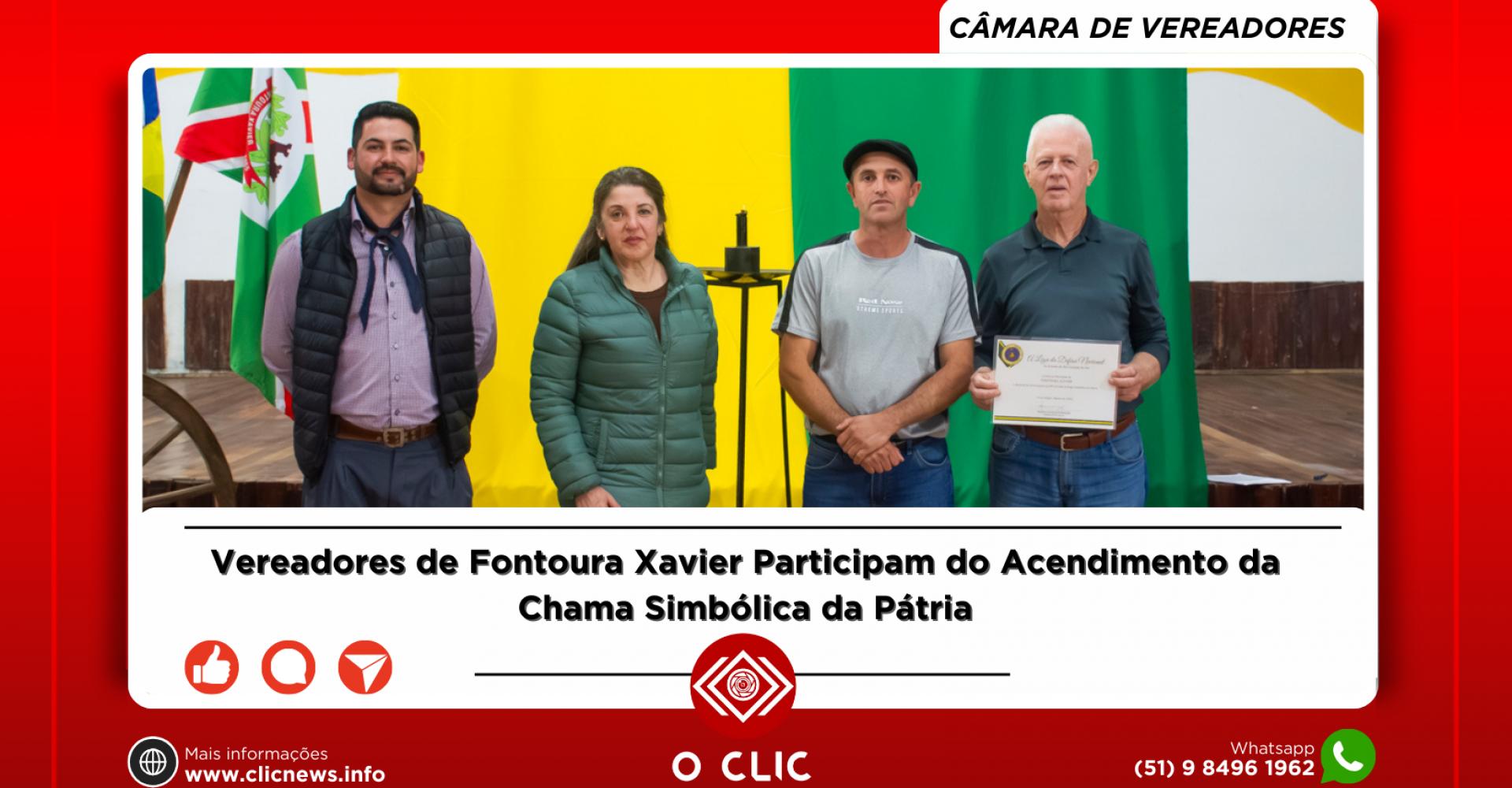 Na noite desta sexta-feira (22 de agosto de 2025), os vereadores de Fontoura Xavier marcaram presença no acendimento da Chama Simbólica da Pátria, realizado no CTG Osório de Assis. O ato cívico deu início às comemorações da Semana da Pátria no município e reuniu autoridades, representantes de entidades e a comunidade local.