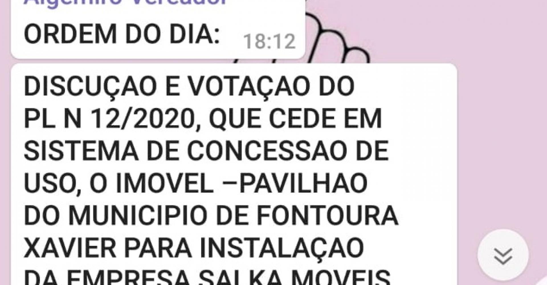 Por conta da previsão para o mês de julho, devido ao Covid-19, a Câmara optou por realizar por um mês a Sessão de forma virtual pelo aplicativo whatsapp.