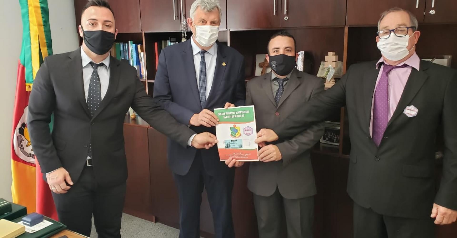 Os vereadores também visitaram os Gabinetes dos Deputados Federais Maurício Alexandre Dziedricki e Afonso Motta em busca de mais recursos;